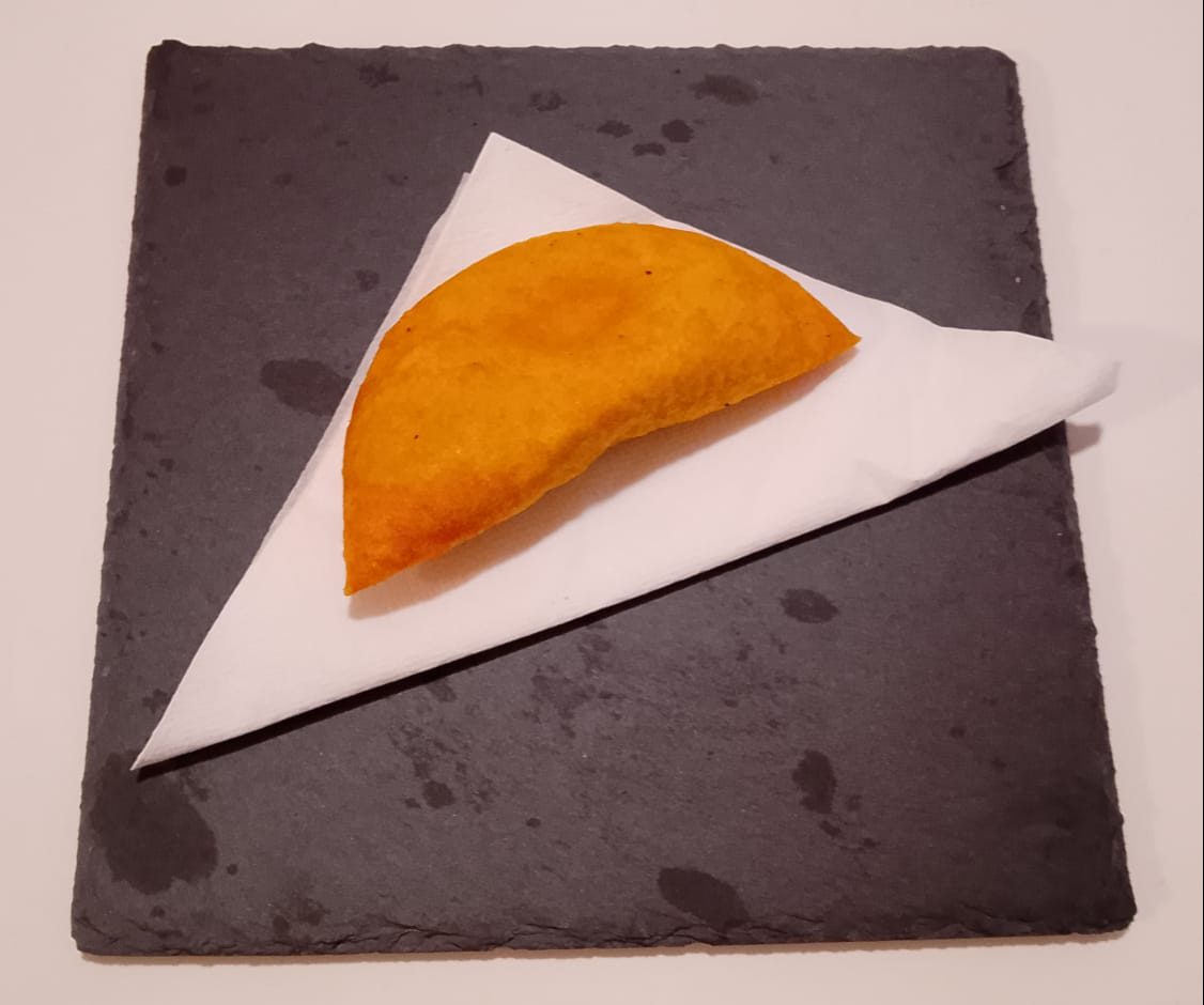 Una deliciosa empanada colombiana, puede ser de pollo o ternera